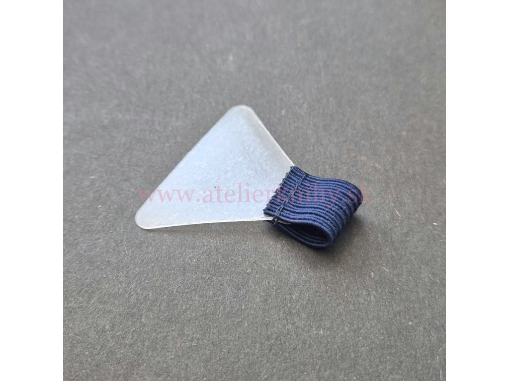 Držiak pera samolepiaci, s plochou tm. modrou gumou. Guma je pevne prišitá k transparentnému plastu so samolepiacou vrstvou, vďaka čomu je aplikácia čistá a jednoduchá. Držiak je ideálnym doplnkom každého zápisníka alebo diára.