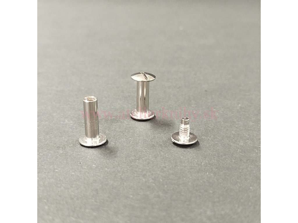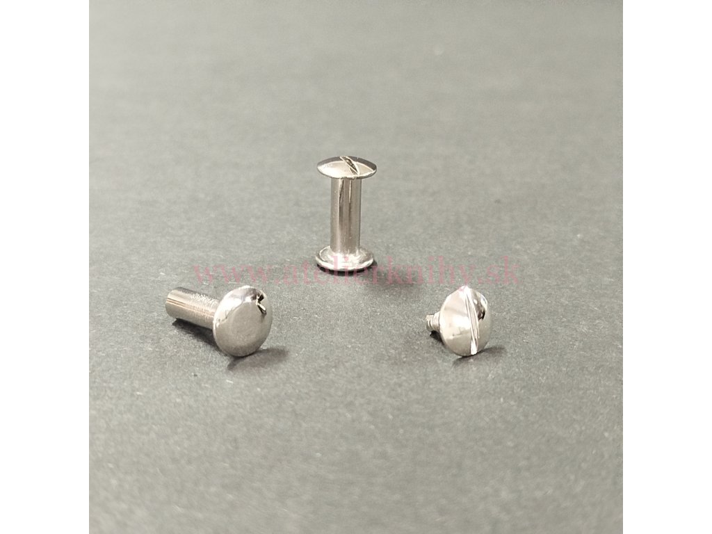 › kovové produkty › skrutky knihárske › strieborná farba - nikel a oceľ › Skrutka knihárska 15mm nikel