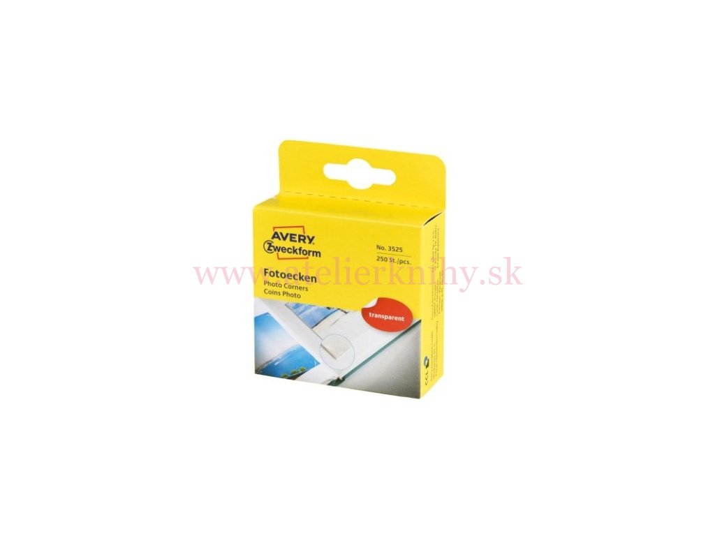 Transparentné fóliové samolepiace vrecko - roh na prichytenie fotografii do klasických albumov, hrany šírky cca 9mm, balenie obsahuje 250ks, balené v papierovej krabičke s dispenzorom.
