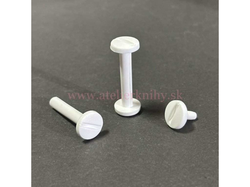 › kovové produkty › skrutky knihárske › skrutky a nity plastové › Skrutka knihárska 35mm biely plast, G