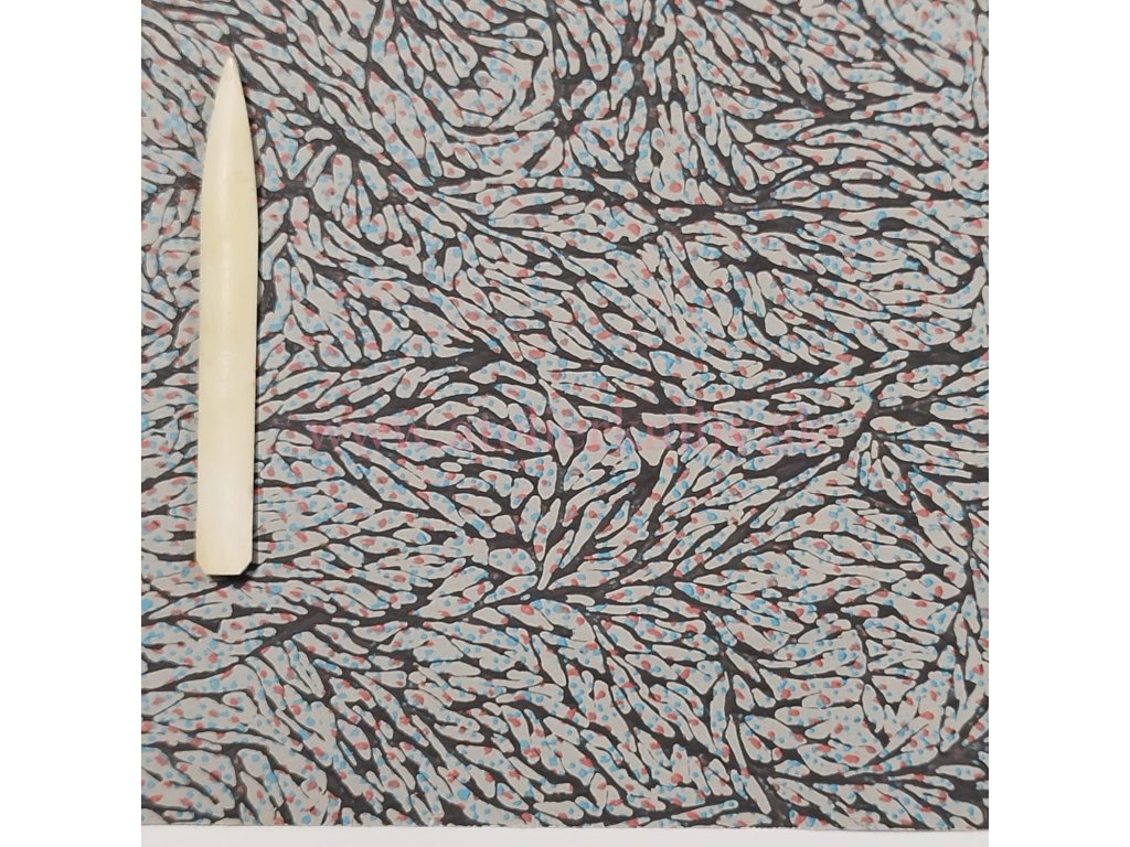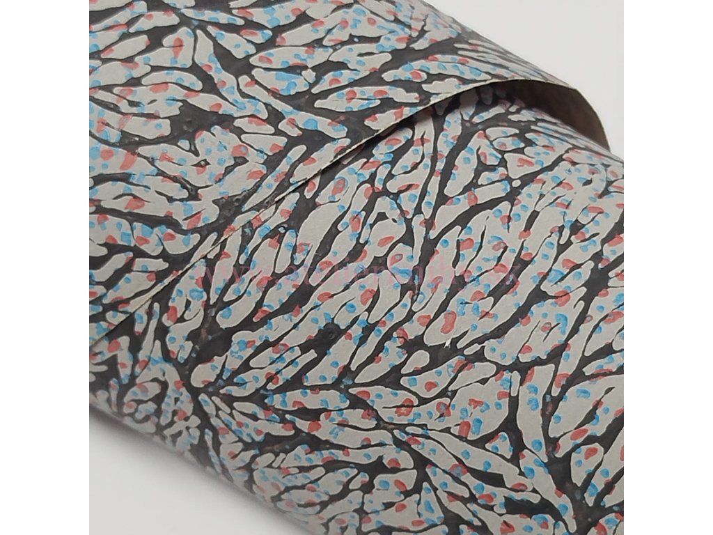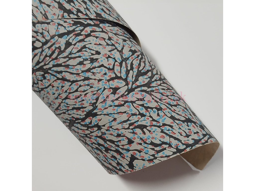 Dekoratívny glejovaný papier s povrchovou štruktúrou a plastickým vzorom, ktorý mierne vystupuje nad povrch a vytvára jemný reliéfny efekt.